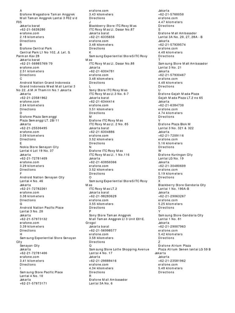 This is a Android based channel. 3A ERAFONE PEJATEN VILLAGE Lantai. ERAFONE ATRIUM PLAZA Plaza Atrium Senen lantai LG 59 B Jakarta 021-23581962 ANDROID NATION GRAND INDONESIA Grand Indonesia West Mall Lantai 3 No 22.